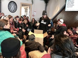 At the end of afternoon practice, there were high fives all round and we gathered again at The Lounge bar for some apres and sharing of stoke. Communications Executive and rad snowboarder Jen said a few words of thanks before handing out some kickass swagger from GoPro, Rojo, Dragon Alliance, POW and Mons Royale.