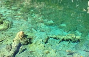 The lake edge is built from dissolved minerals deposited by the water. This mineral layer is fragile and destroyed easily so avoid walking on it.