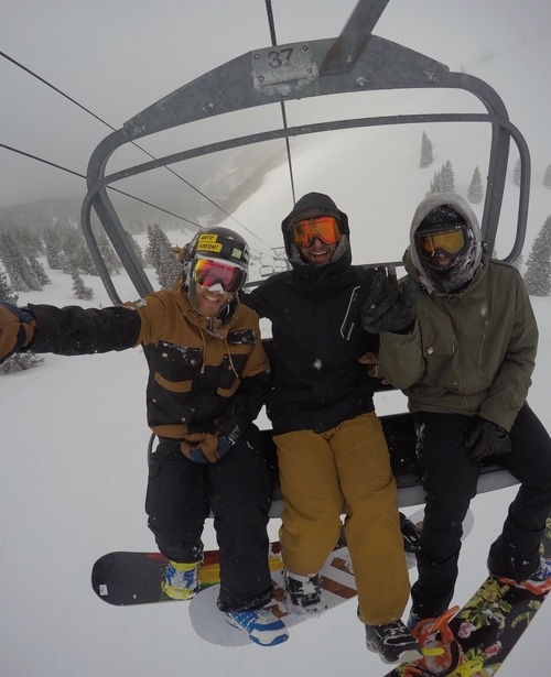 Unfortunately there isn’t! I grew up surfing and skateboarding so it only seemed natural to jump on a snowboard. I did for the first time in Japan when I was 18… Immediately addicted!