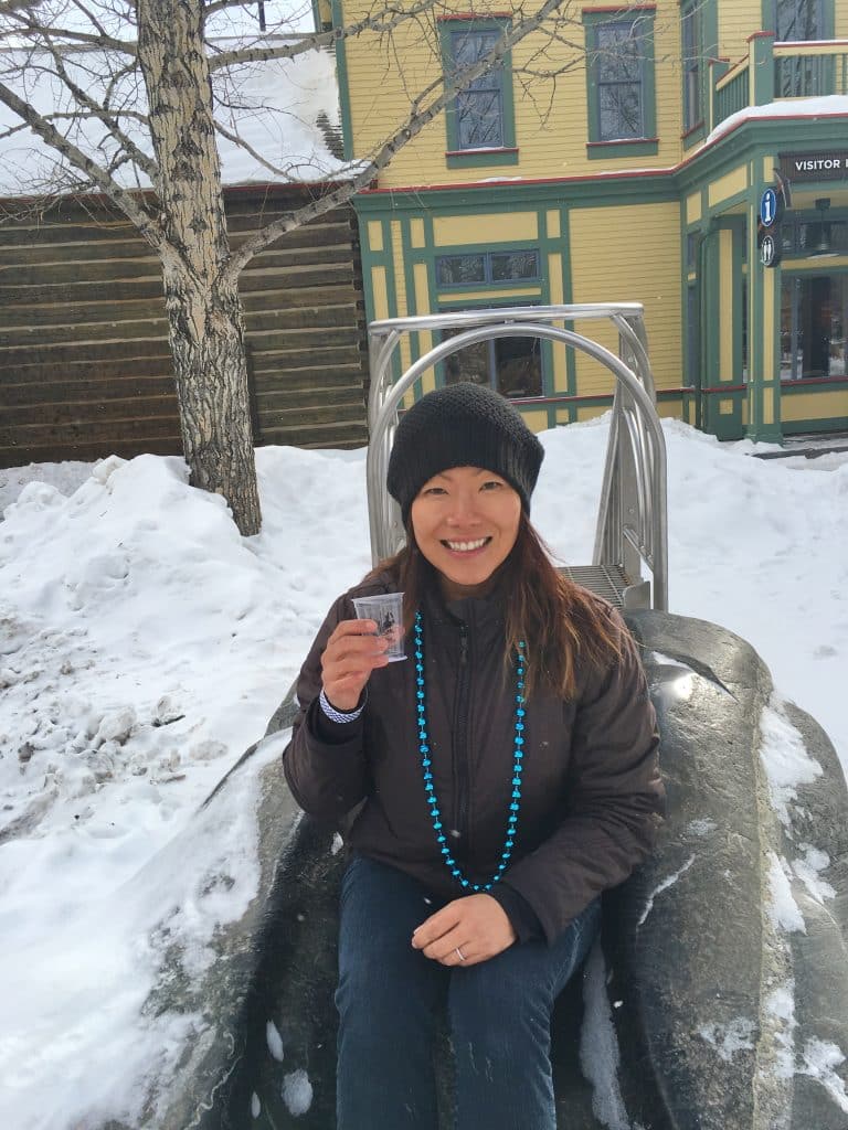 My biggest tip – take your cup off the shotski especially if you are vertically challenged like me otherwise you’ll end up wearing it. Proud to say we set a new world record! There was a total of 271 skis and 831 people, breaking last year’s record of 777 participants. They actually had to turn away around 300 people because they just didn’t have enough skis. The shotski measured 396m/1301ft long down Main Street.